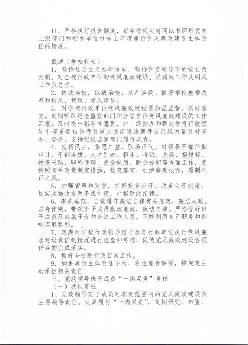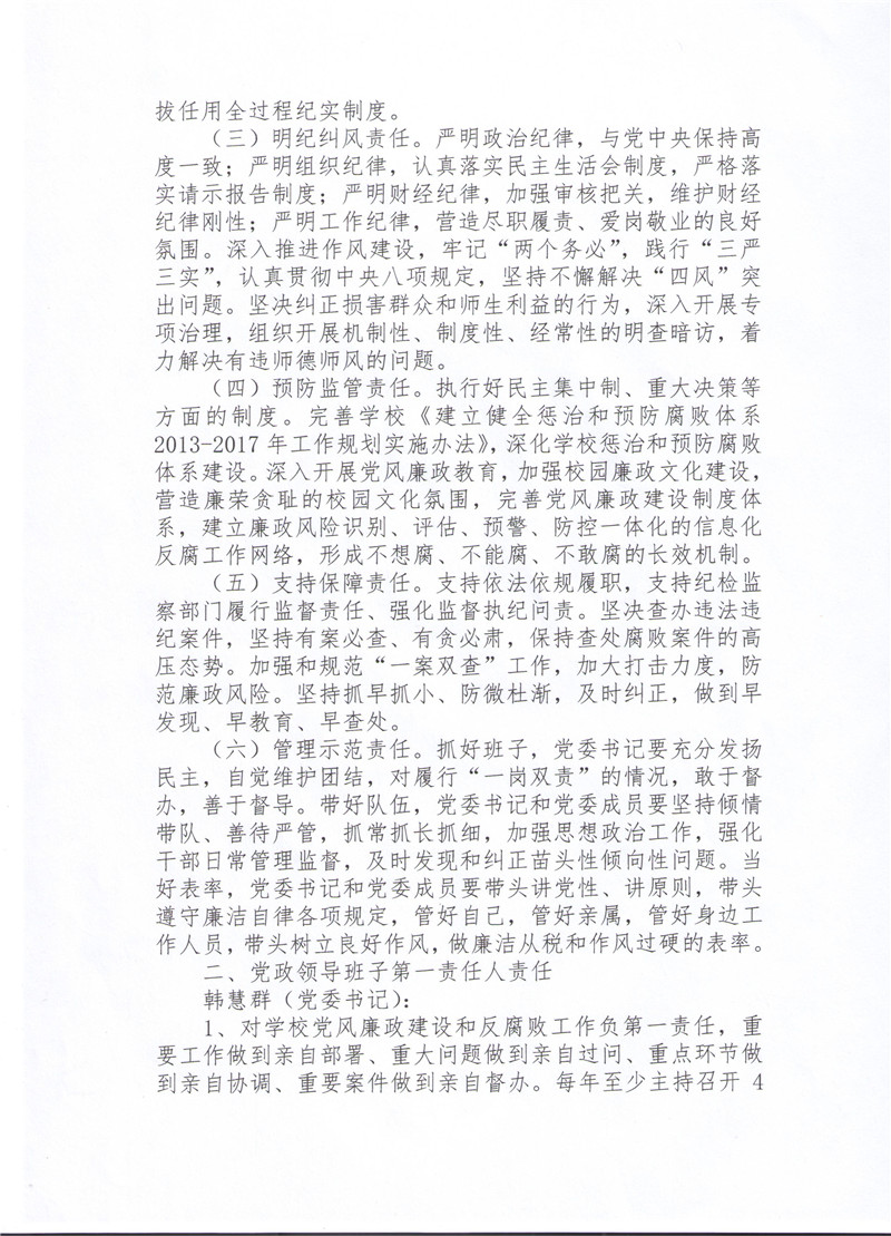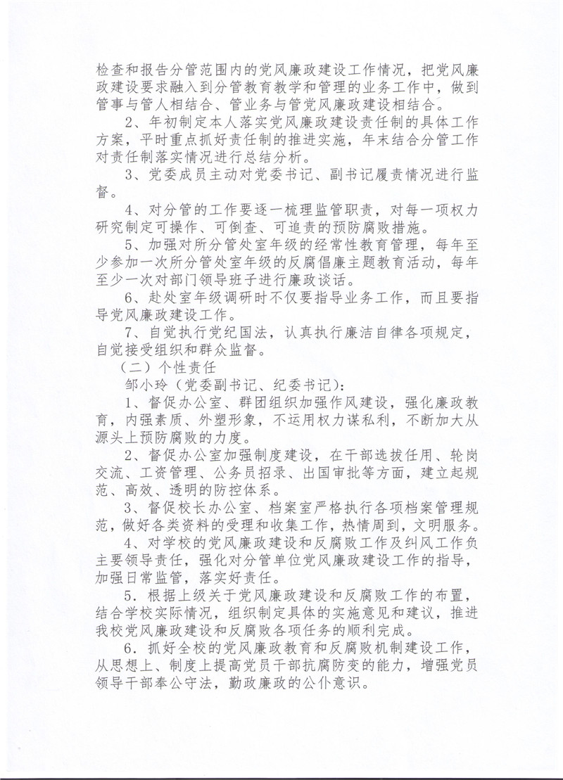 中共襄阳市第二中学委员会及领导班子成员落实党风廉政建设岗位职责