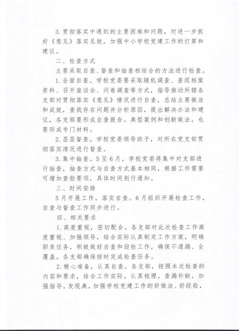中共襄阳市第二中学委员会关于做好《关于加强中小学校党的建设工作的意见》贯彻落实情况自查和迎检工作的通知