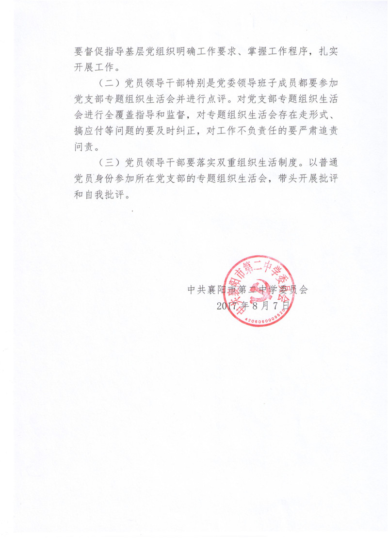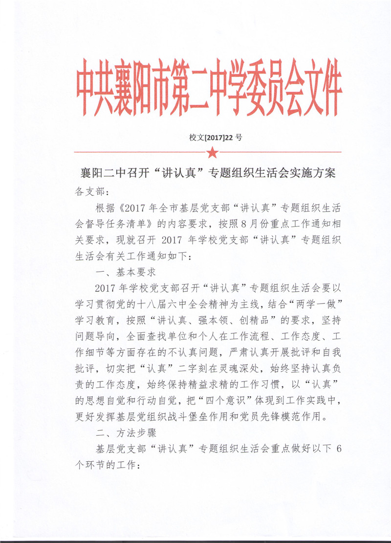 襄阳二中召开“讲认真”专题组织生活会实施方案