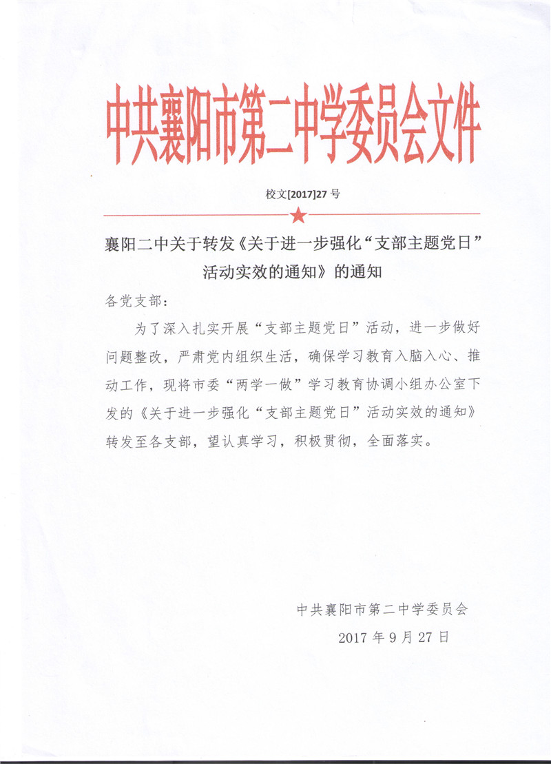 襄阳二中关于推进“两学一做”学习教育常态化制度化10月份重点工作的通知
