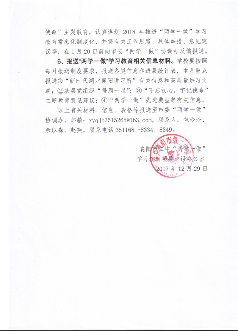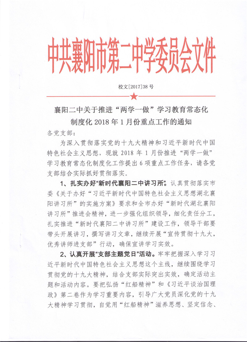 襄阳二中关于推进“两学一做”学习教育常态化制度化1重点工作的通知