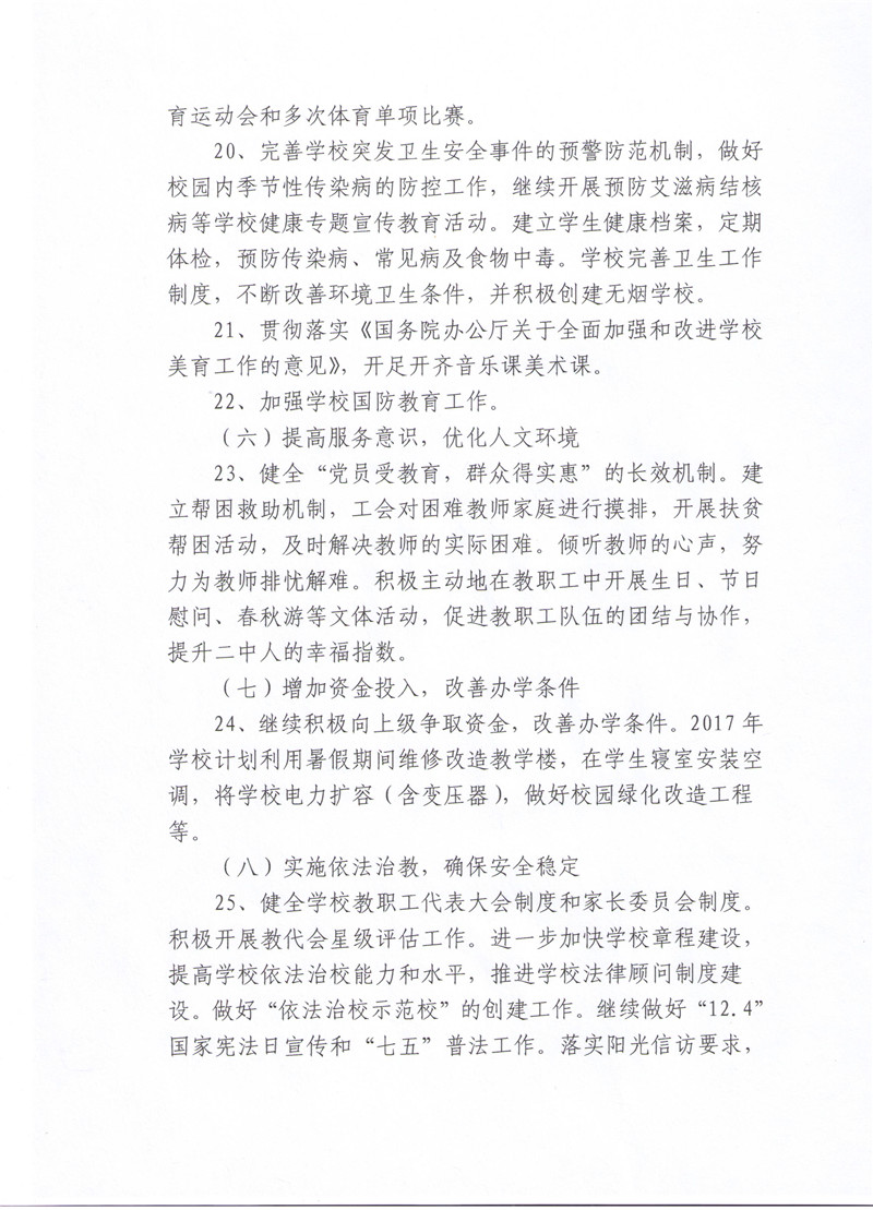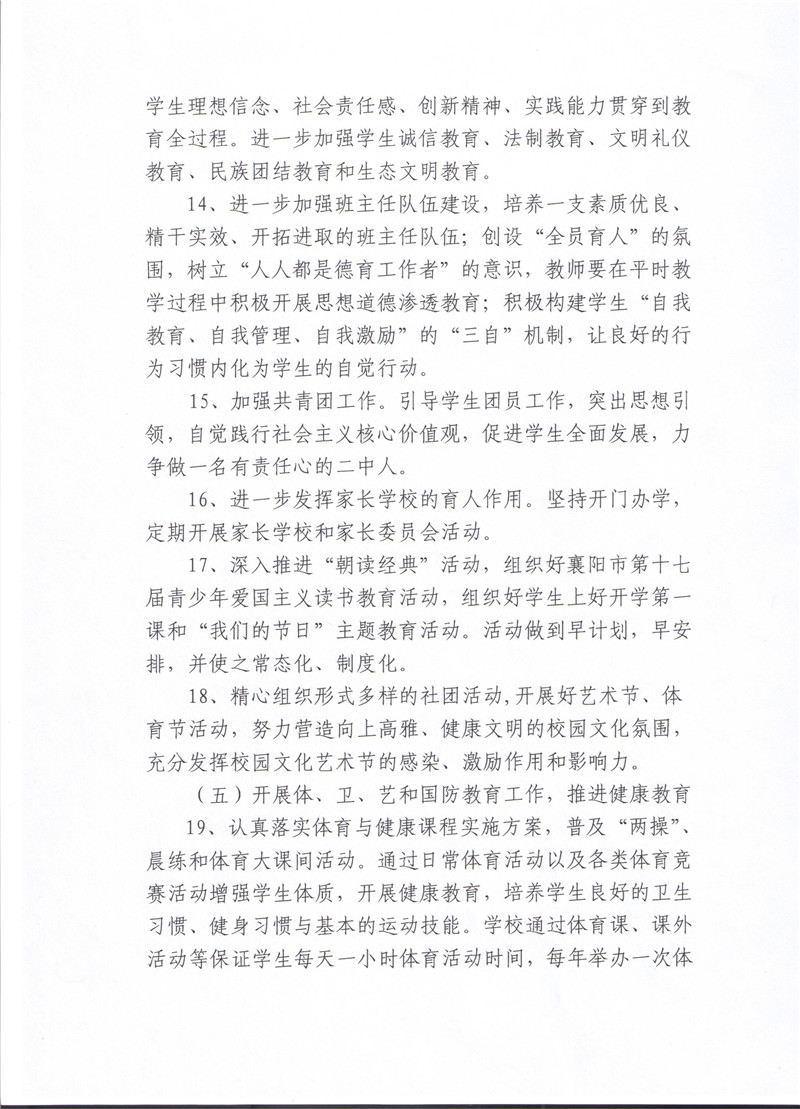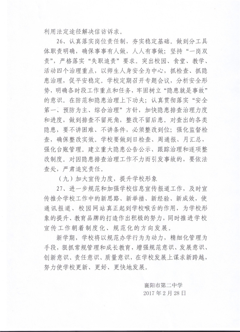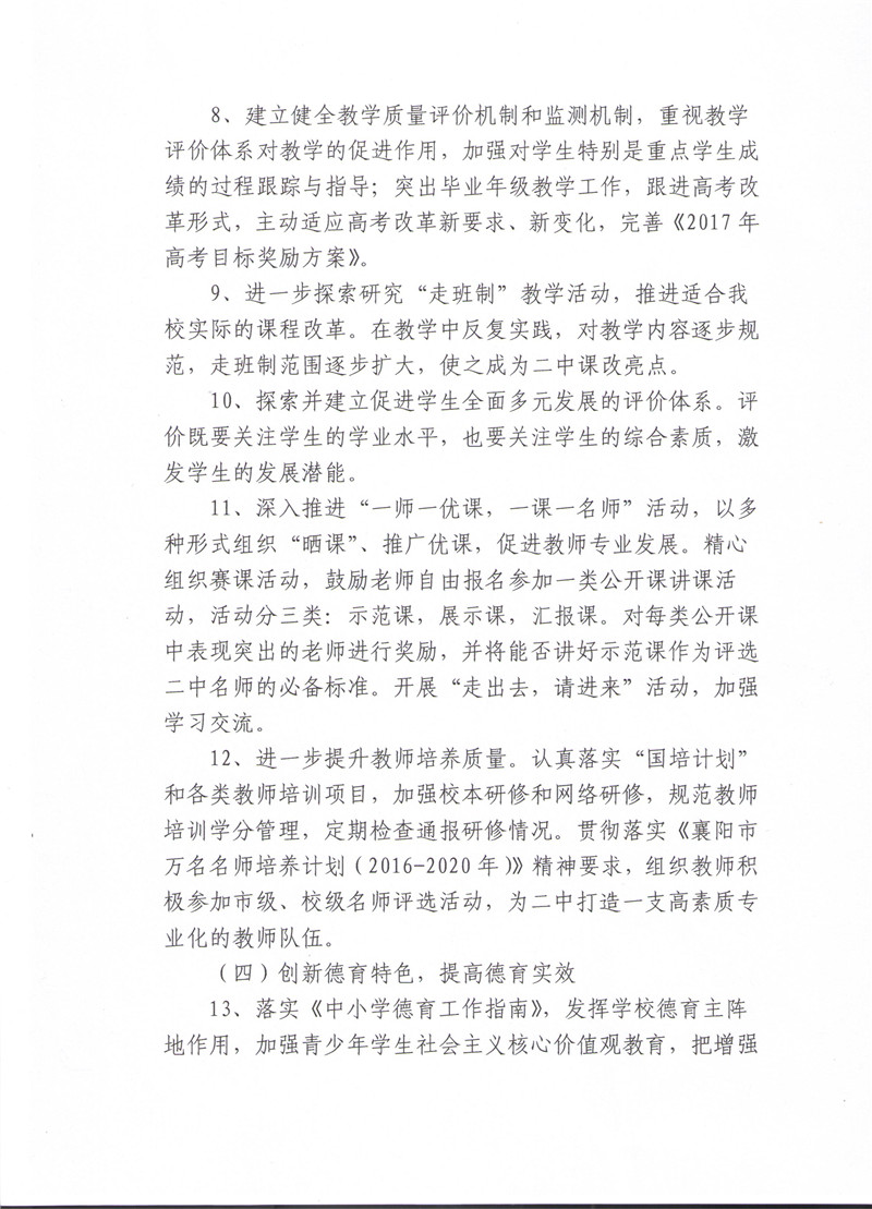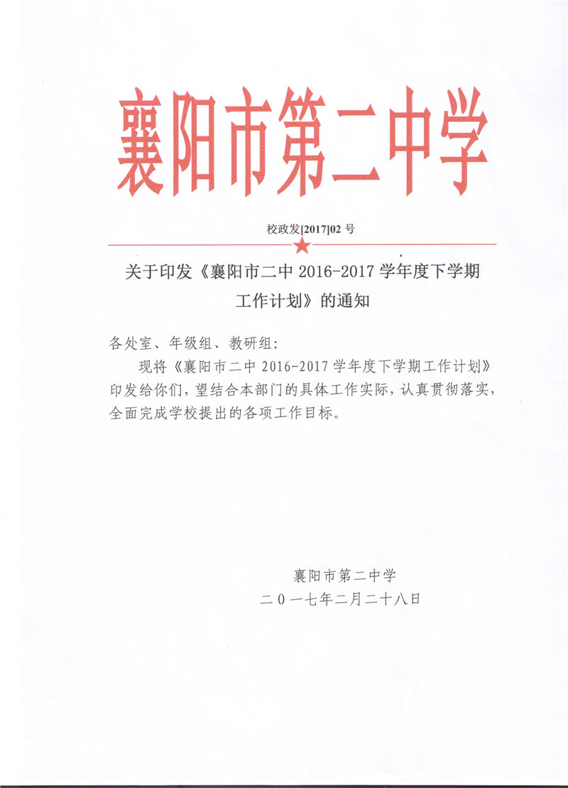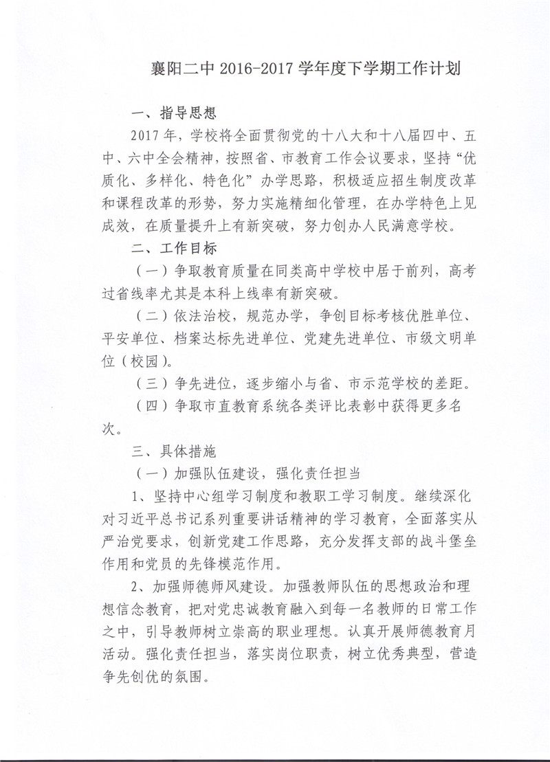 襄阳市二中2016-2017学年度下学期工作计划