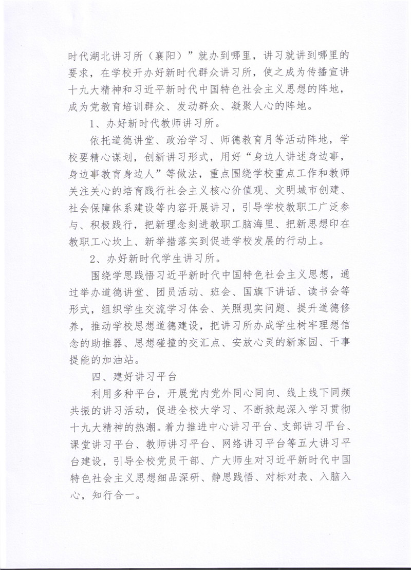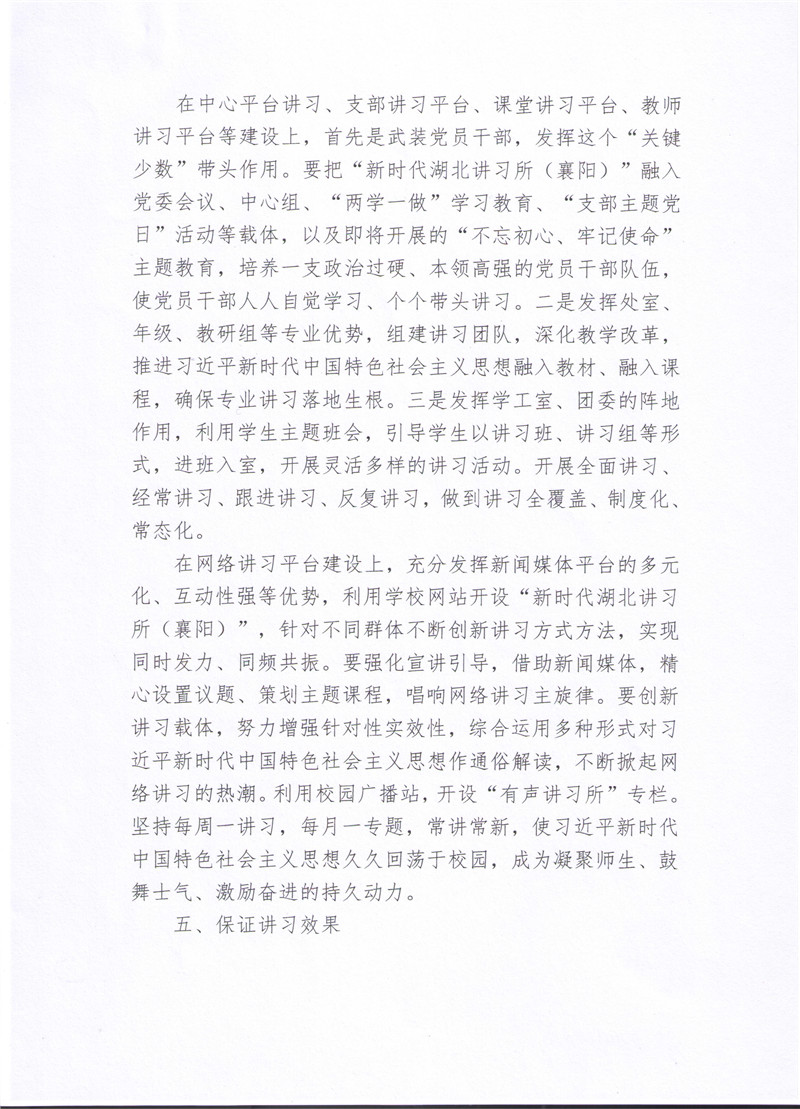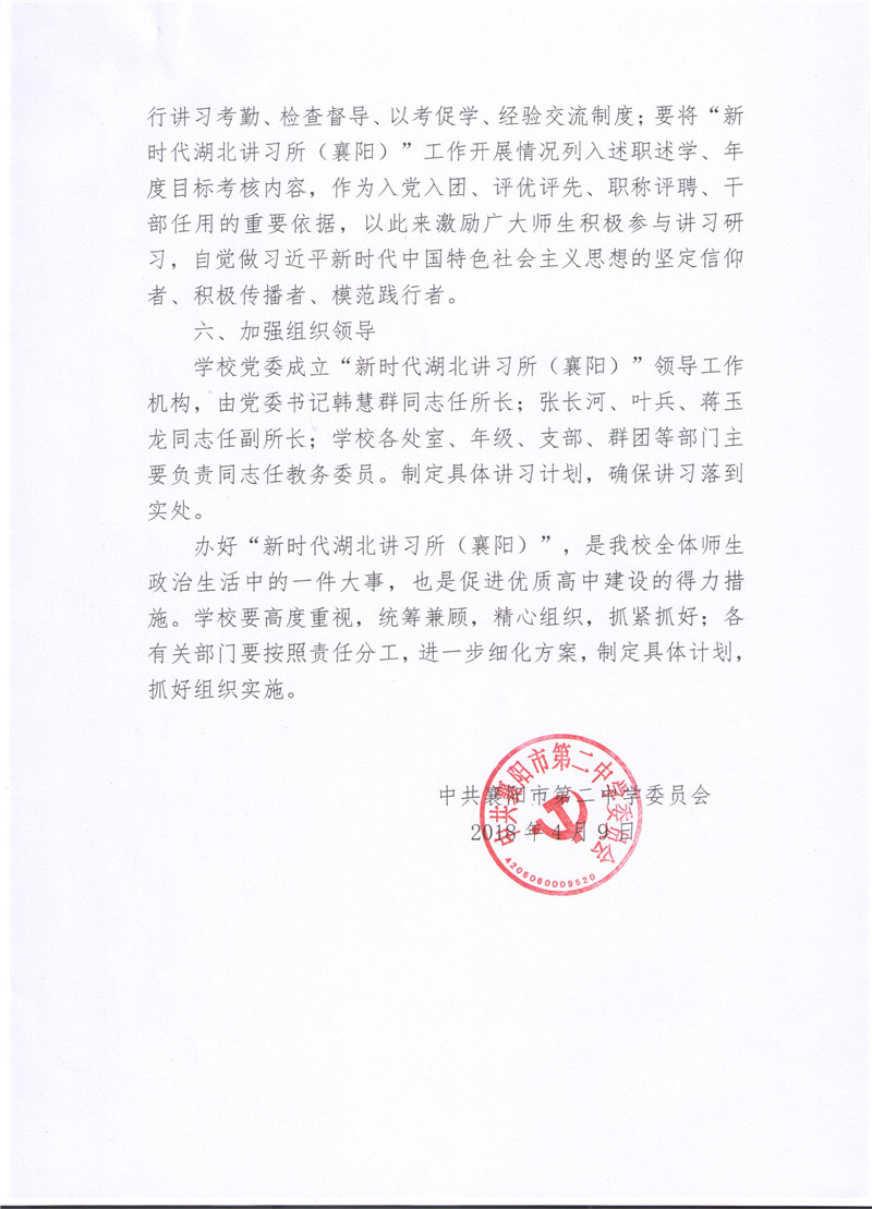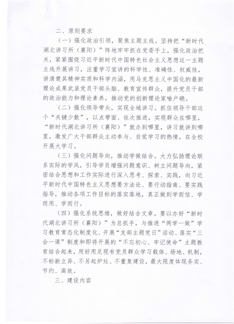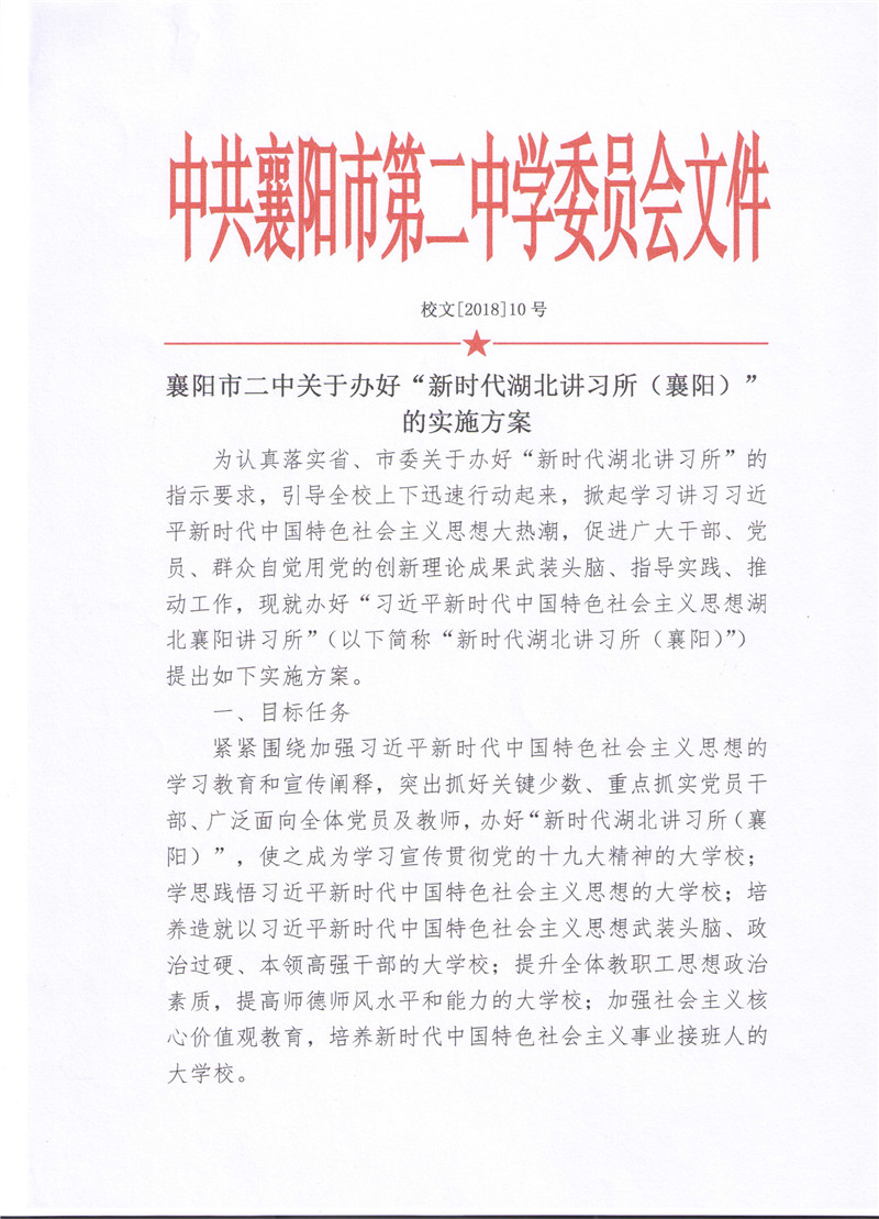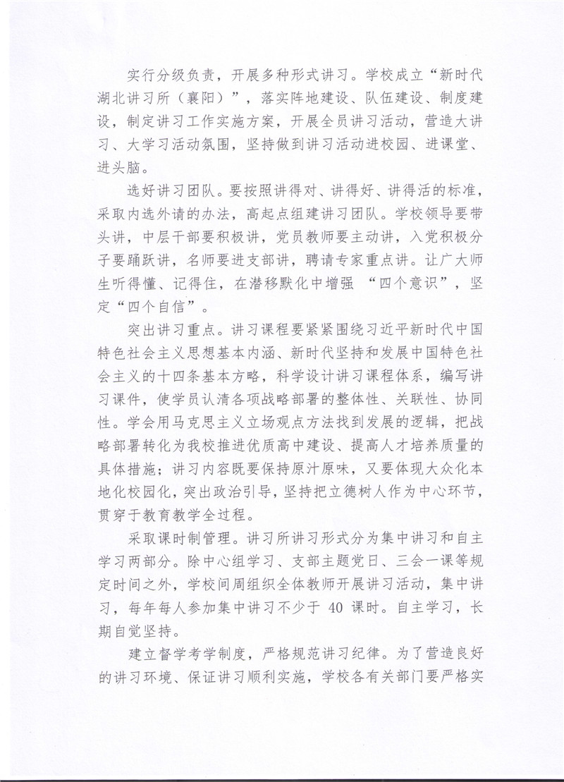 襄阳市二中关于办好“新时代湖北讲习所(襄阳)”的实施方案