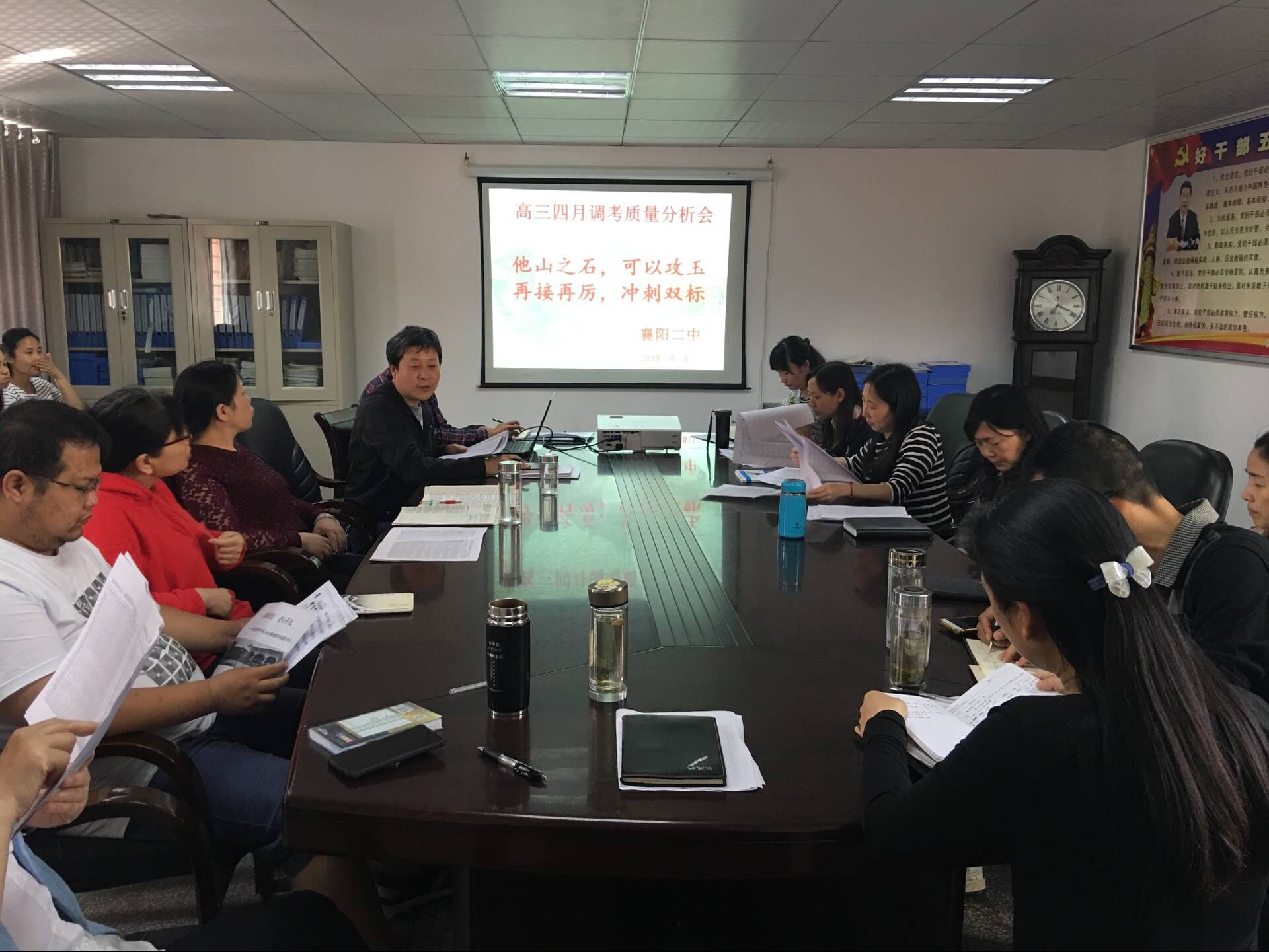 5月3日至5月4日,我校五名高三教师分别代表了语文、数学、英语、文综和理综五个学科,远赴武汉参加了湖北省教育学会4月份调考的质量分析会。带着武汉会议精神,5月8日下午学校召开了我校高三年级四月调考质量分析会。会前,焦主任提前谋划,确立了本次会议的主题为“他山之石可以攻玉,再接再厉冲刺双目标”。