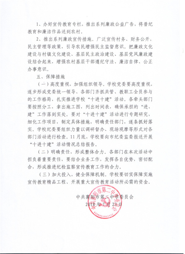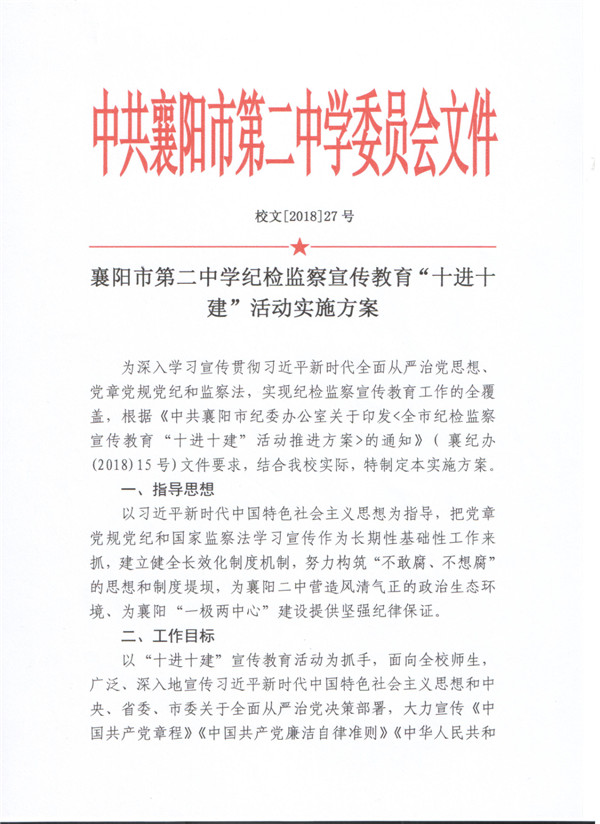 襄阳二中纪检监察宣传教育“十进十建”活动实施方案