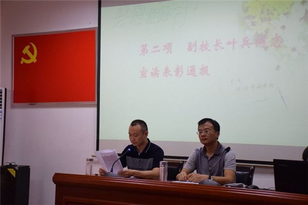 学校副校长叶兵同志代表学校热情洋谥地通报表彰了2017—2018学年优秀集体和优秀个人!