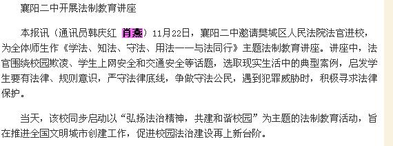 发布日期:2018-12-10 12:09:09 浏览量:6724襄阳二中开展法制教育讲座