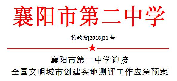 襄阳市第二中学迎接全国文明城市创建实地测评工作应急预案