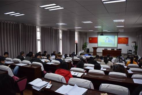 为了增强政治学习的效果,学校办公室提前给每位教职工都印发了学习的材料,全体教职工都是对着材料,看着视频在学习,学习很投入。