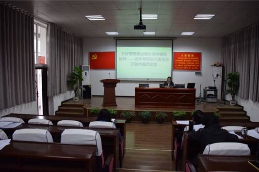 2019年3月21日下午四点半,我校全体教职工齐聚在六楼阶梯教室,学习《习近平主持召开学校思政课教师座谈会》的相关内容。这次的政治学习由我校副校长张长河同志主持,为了加强学习的深度和广度,这次的学习采用了视频学习,材料学习,教师代表谈体会以及韩书记做重要讲话这四种形式,丰富多彩的学习内容让每位教师学到了精髓,学出来了效果。