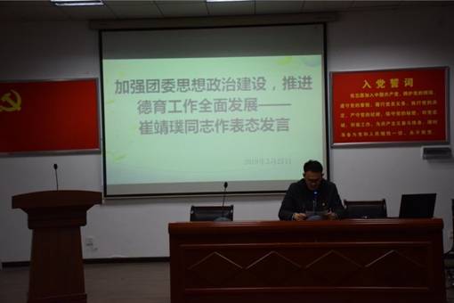 第三位谈体会的教师是我校团委书记崔靖璞同志,作为校团委书记,他将加强思想政治教育的平台建设,从各方面落实立德树人根本任务、培养担当民族复兴大任的时代新人。