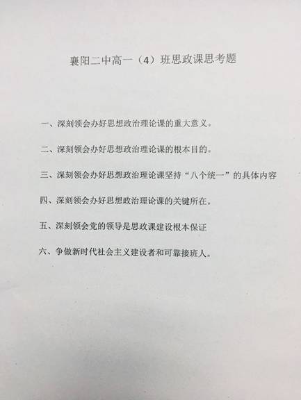 襄阳二中思想政治理论课系列活动——党委书记深入教学一线,亲自给学生上思政课