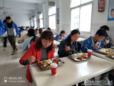 襄阳二中党委书记韩慧群和学生们同吃一锅饭菜,不搞特殊化,经常深入食堂,和学生、教师一同用餐,并经常听取师生们对食堂饭菜的提出意见和建议。