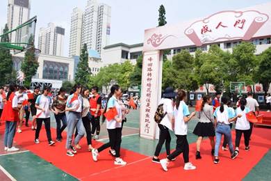 都说十八岁是一种朦胧,一种幼稚与成熟之间的薄膜。都说十八岁是一段历程;一段终点与起点之间的交替。十八岁的我们已经集结完毕,迈向成人门的红地毯已经铺装。让我们在母校的注视下,跨过成人门,走向成才路,向着更加美好的生活奋进吧!