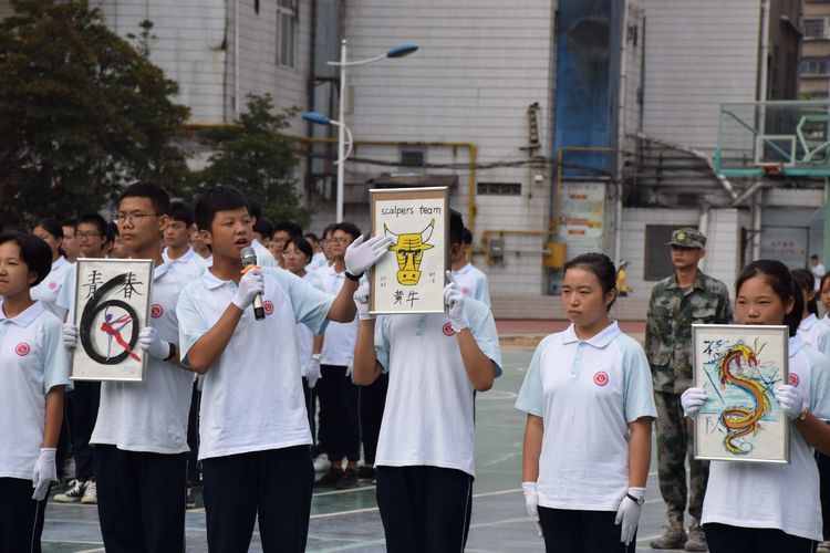 接着各班级班徽介绍人分别上前展示了本班班徽的图案、组成与意义。他们以不同的形式表达了相同的精神:拼搏、顽强。