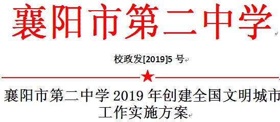 襄阳市第二中学2019年创建全国文明城市工作实施方案