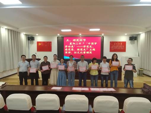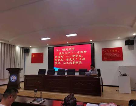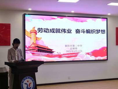 习近平总书记强调,“劳动是推动人类社会进步的根本力量。幸福不会从天而降,梦想不会自动成真。”我们需要以主人翁的姿态、以只争朝夕的精神,共同投身中华民族伟大复兴事业,我们才能不断抵达发展的新境界、梦想的新高度。在建党100周年来临之际,为了扎实开展党史学习教育,讴歌党的丰功伟绩,弘扬艰苦奋斗、求实创新的拼搏精神,展现全校教职工践行新理念、建功“十四五”、诚实劳动、热爱劳动、为党育人、为国育才的精神风貌,襄阳市第二中学于2021年5月11日举行了“‘中国梦 劳动美’——学党史、感党恩、跟党走”教师演讲、征文比赛。