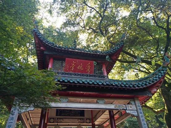 位于岳麓书院后青枫峡的小山上的“爱晚亭”,取“停车坐爱枫林晚,霜叶红于二月花”之诗意。亭内有一横匾,上刻毛泽东手迹《沁园春•长沙》一词,亭正面额朱色鎏金"爱晚亭"匾,系由当时的湖南大学校长李达专函请毛泽东主席所书手迹而制。爱晚亭是革命活动胜地,毛泽东青年时代,在第一师范求学,常与罗学瓒、张昆弟等人一起到岳麓书院,与蔡和森聚会爱晚亭下,纵谈时局,探求真理。