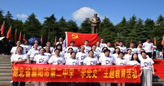 为进一步深化党史学习教育,庆祝中国共产党成立100周年,2021年7月26日—28日,襄阳市第二中学40余名党员干部教师赴湖南省韶山毛泽东故居,开展以“寻访红色足迹,传承红色基因”为主题的党史教育现场教学活动。