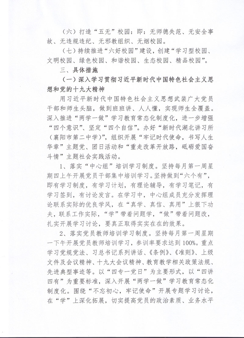 关于印发《襄阳市第二中学2017--2018年度下学期党委工作计划》的通知