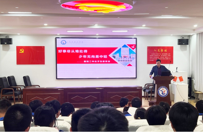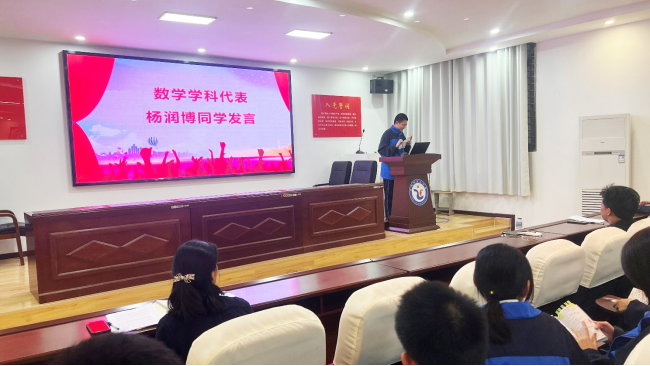 高二年级主任焦进首先对参加此次活动的同学表示祝贺,对他们的学习态度和学习劲头给予肯定,并希望各位同学能够树立自信不自傲,明确目标不迷茫,敢于超越不气馁,乘风破浪奋力拼。
