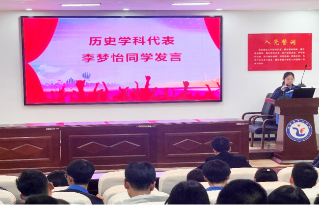 高一年级本次月考第一名明新媛同学做了发言,她感谢学校和老师这一个月无微不至的关怀和谆谆教诲。同时,她号召同学们要树立远大理想,不断追求进步;要有积极进取、乐观自信、健康的心理和健全的人格;要知恩图报、不忘学校、祖国的培养之恩。